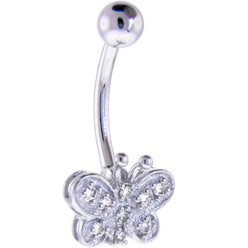 Buy Solid 14KT White Gold Genuine Diamond BUTTERFLY Belly Ring Now