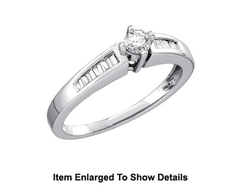 Highly polished 10k. white gold finished Ring, Adorned with 0.25 Carat of round and baguette cut diamond. Trully a beautiful piece of jewelry that will make her heart jump with joy. Great as a Right Hand Ring or as a Promise ring, at a price that us very affordable.